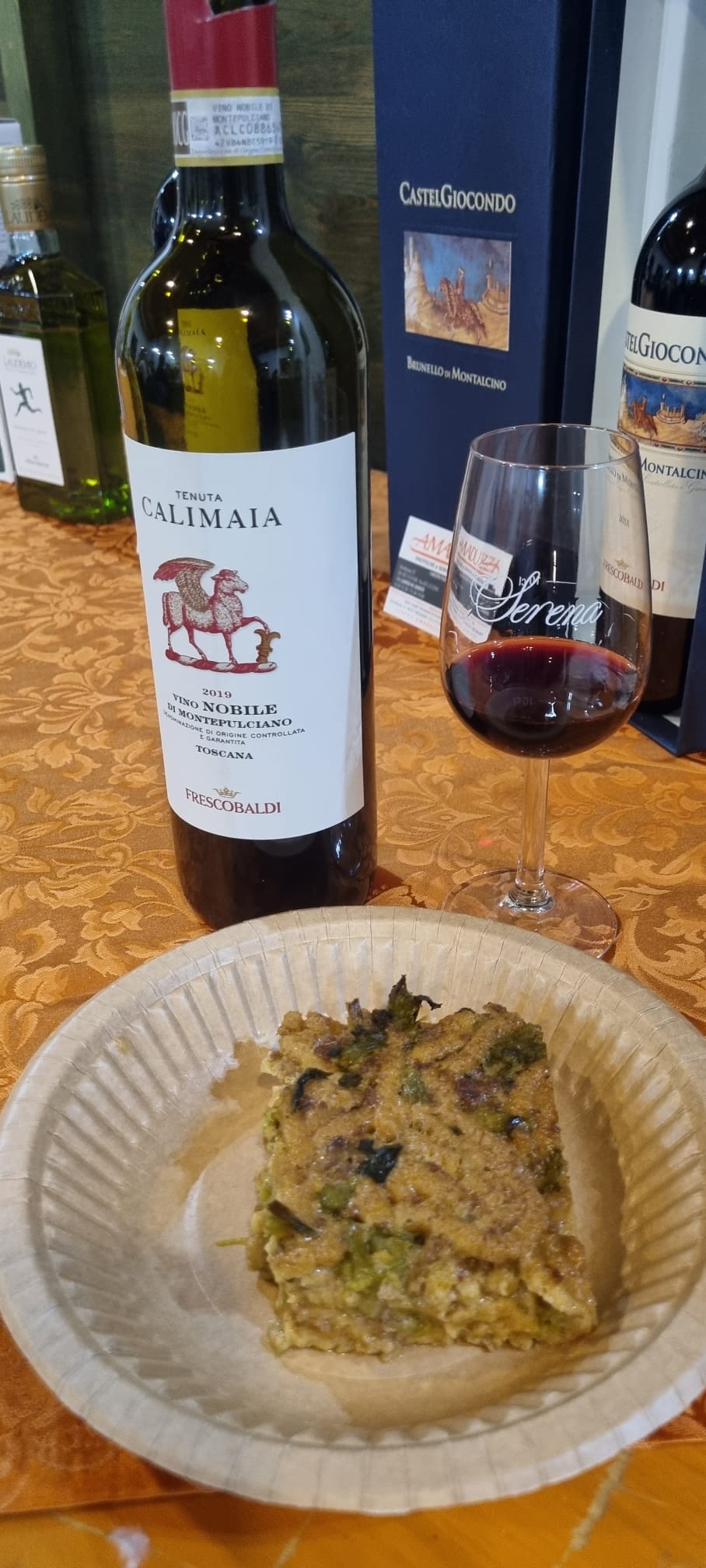 - Timballo di passatelli con cime di rapa, salsiccia e crema di parmigiano con Calimania Nobile di Moltepulciano