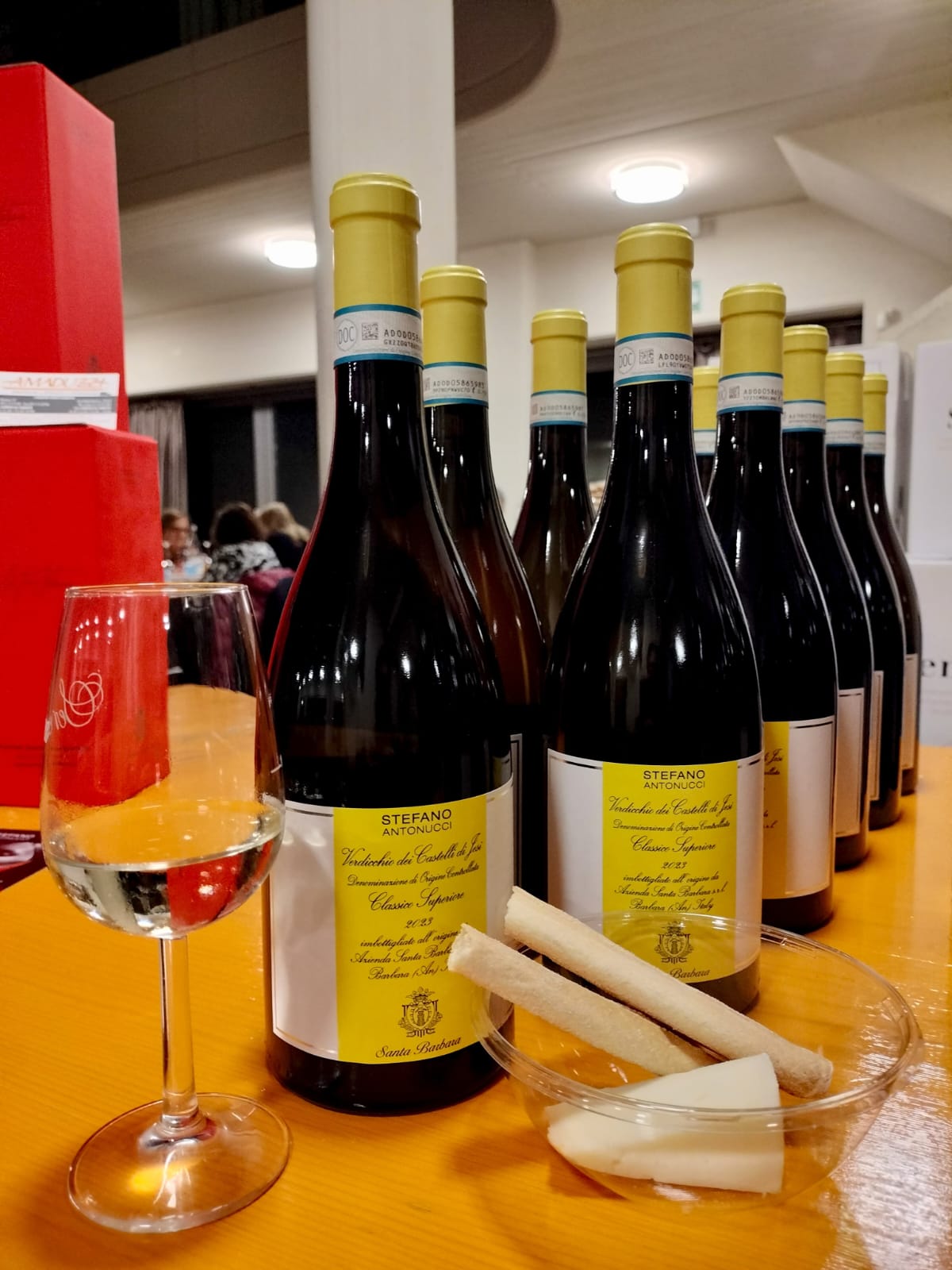 Ed eccoci a sua maestà lo Stefano Antonucci Bianco ovvero Verdicchio superiore classico barricato talmente importante e unico che lo abbiamo fatto assaggiare con un formaggio misto della zona per gustare appieno l'eleganza, la pienezza di questo grande bianco con un finale sofisticato.